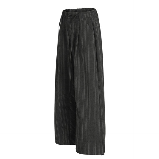 Retro Street Style High-End Preppy Deconstructed Stripe Pleated Design Loose Men's Casual Trousers