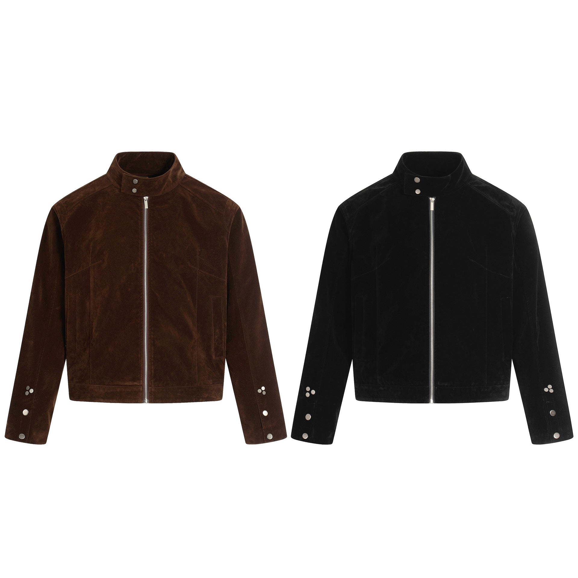 Retro Suede Composite Deconstructed Jacket Design Unisex Short Wide Casual Outerwear